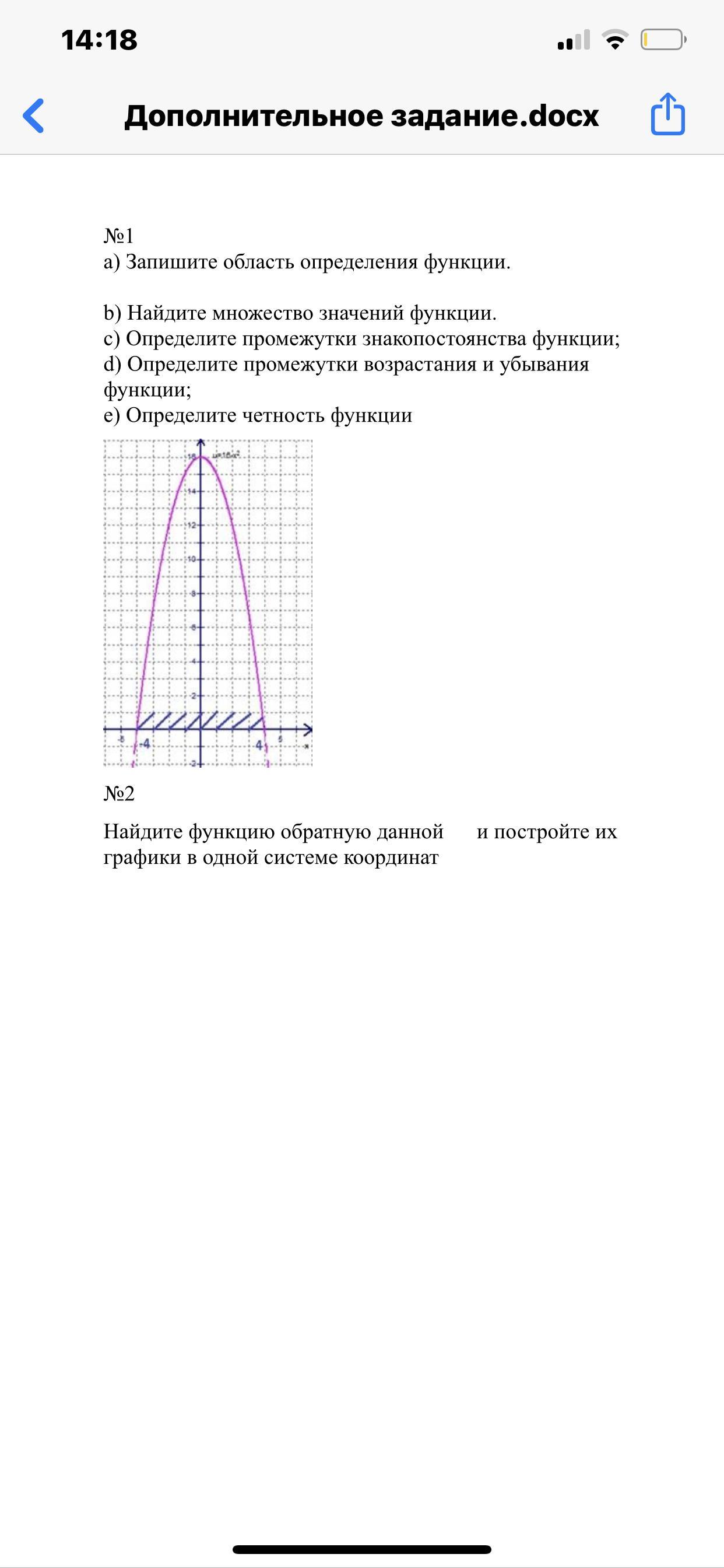 а) ООФ [-4;4] судя по тому, что ниже оси x идет пунктир в условии было про промежуток -4; 4 ? для чего заштрихован промежуток был?
