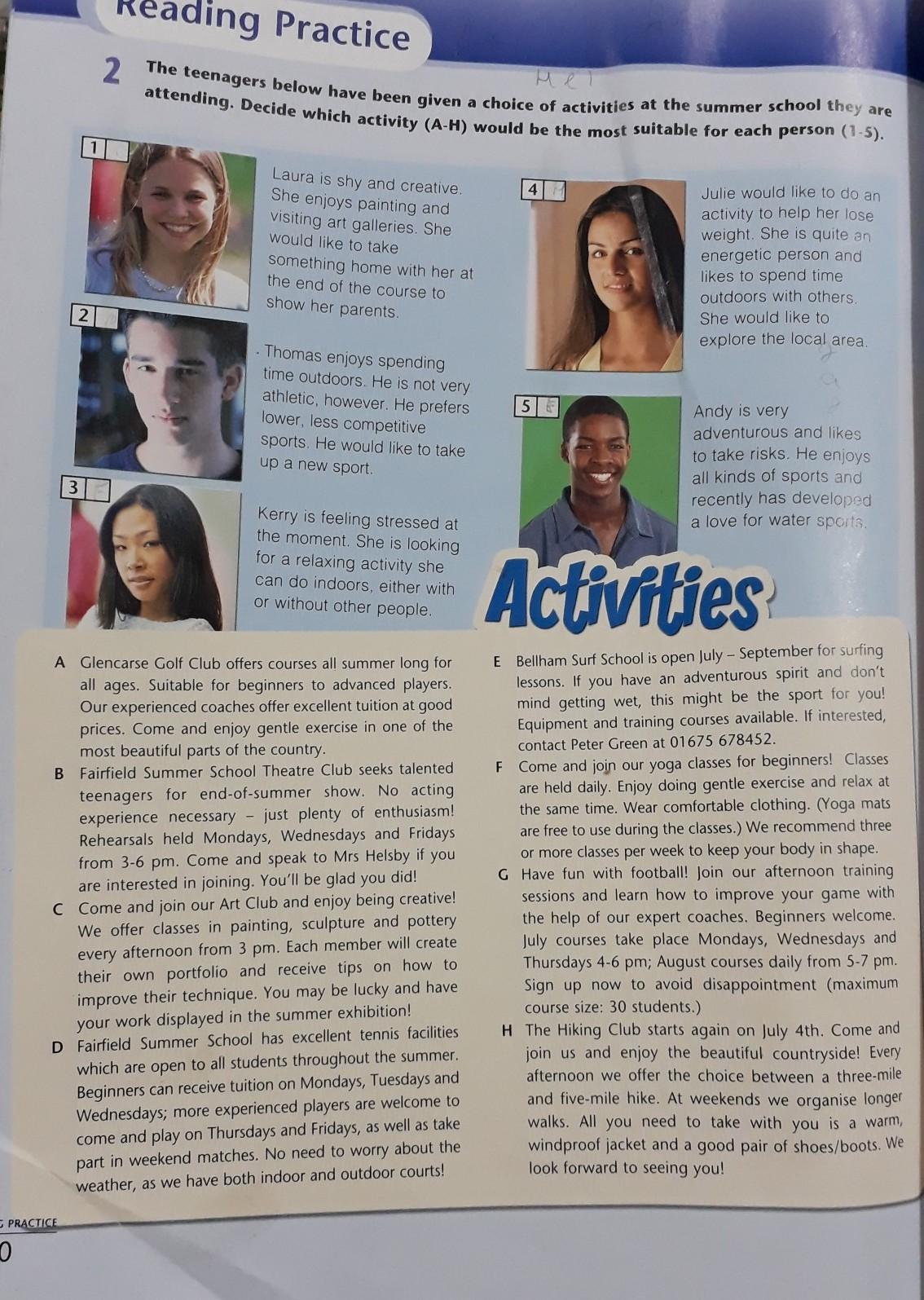 attending. Decide which activity (A-H) would be the most suitable for each person (1-5).