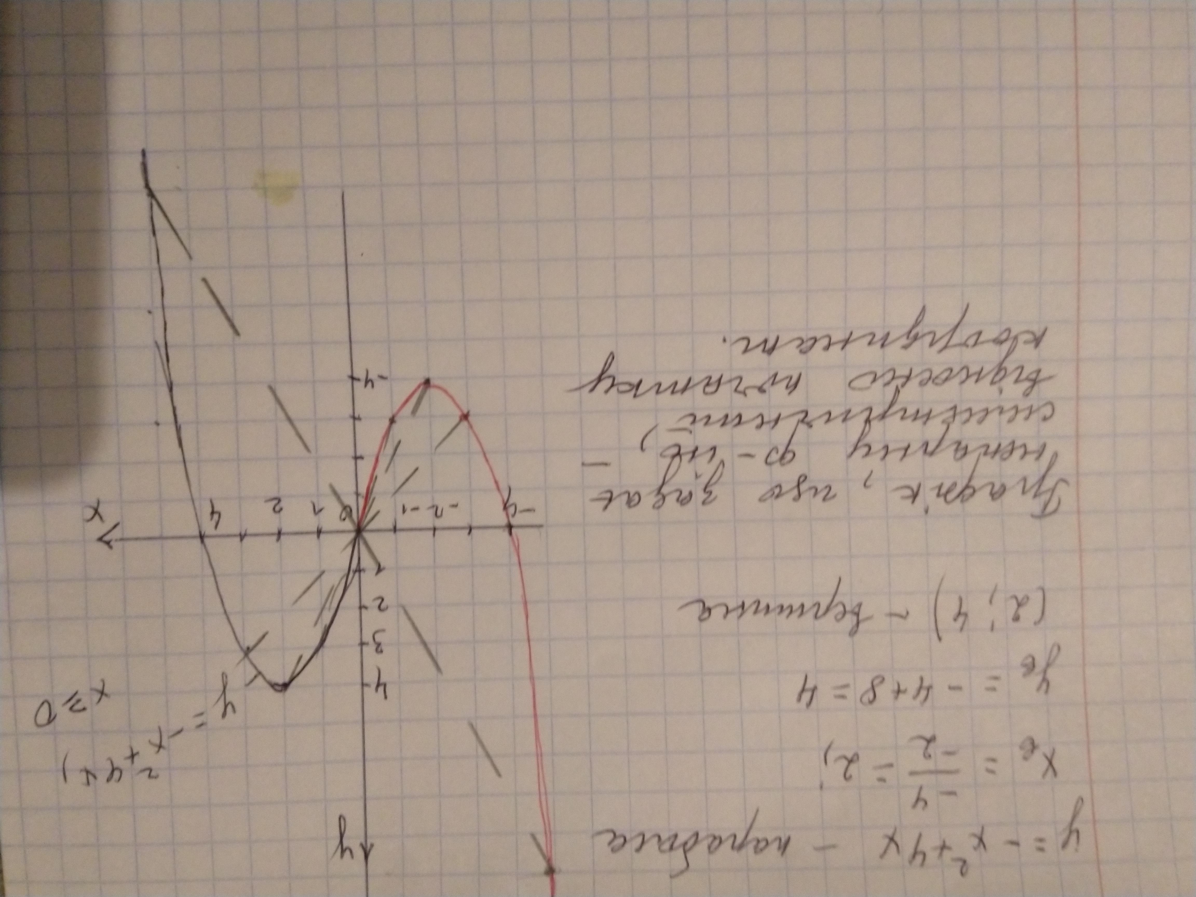 Побудуйте графік функції у = -х2 + 4х при х ≥ 0. Добудуйте його так, щоб утворений графік задавав непарну функцію.