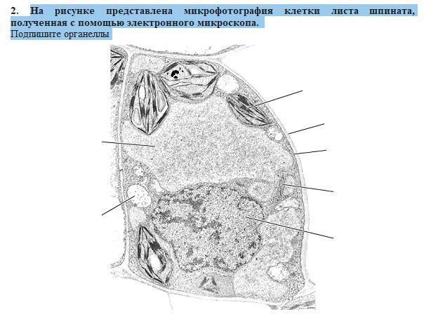 На рисунке представлена микрофотография клетки листа шпината, полученная с помощью электронного микроскопа.