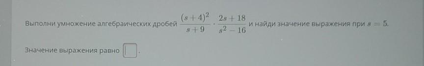 (s+4)²/(s+9) * (2s+18)/(s²-16) pri s=5
