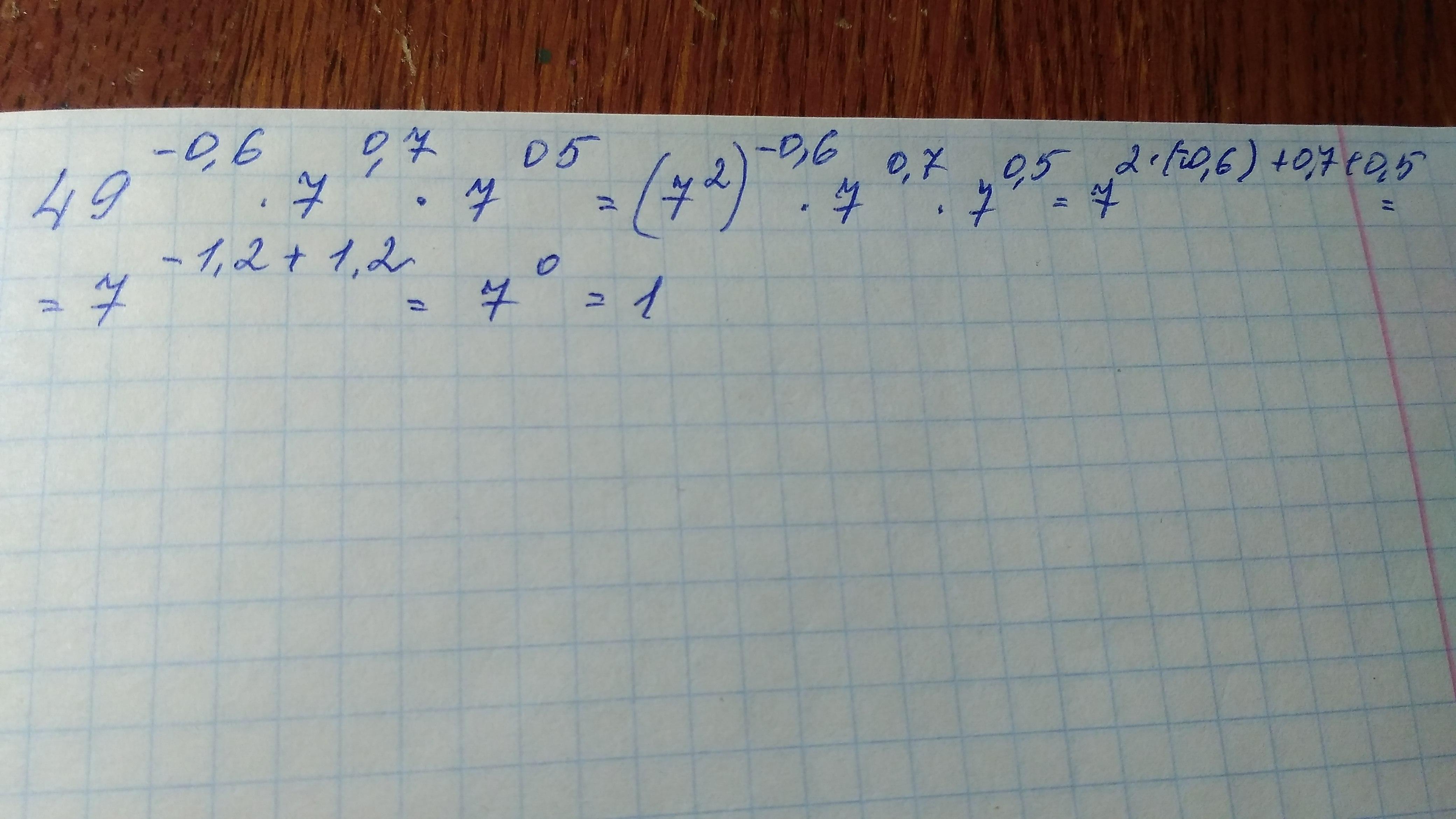 2)49(в степ. -0.6)*7(степ 0,7)*7(степ. 0.5)=