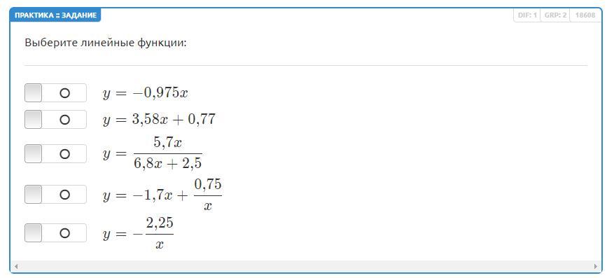 Выберите линейные функции: