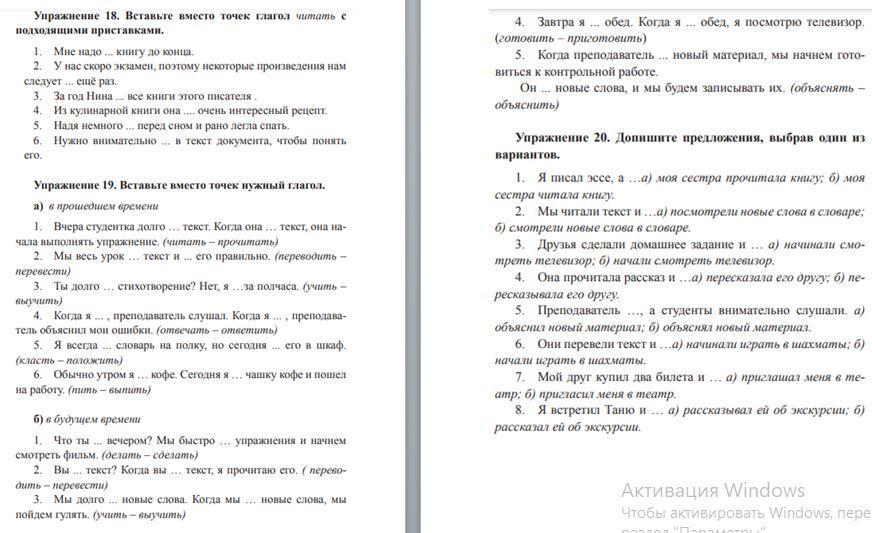 А. 1) читала, прочитала 2) переводили, перевели 3) учила, выучила 4) отвечал, ответил 5) клал, положил 6) пил, выпил
