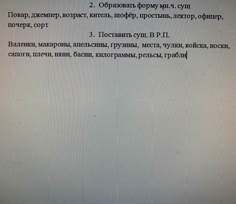 2. повара, джемпера, возраста, кители, шофера, простыни, лектора, офицеры, почерки, сорта