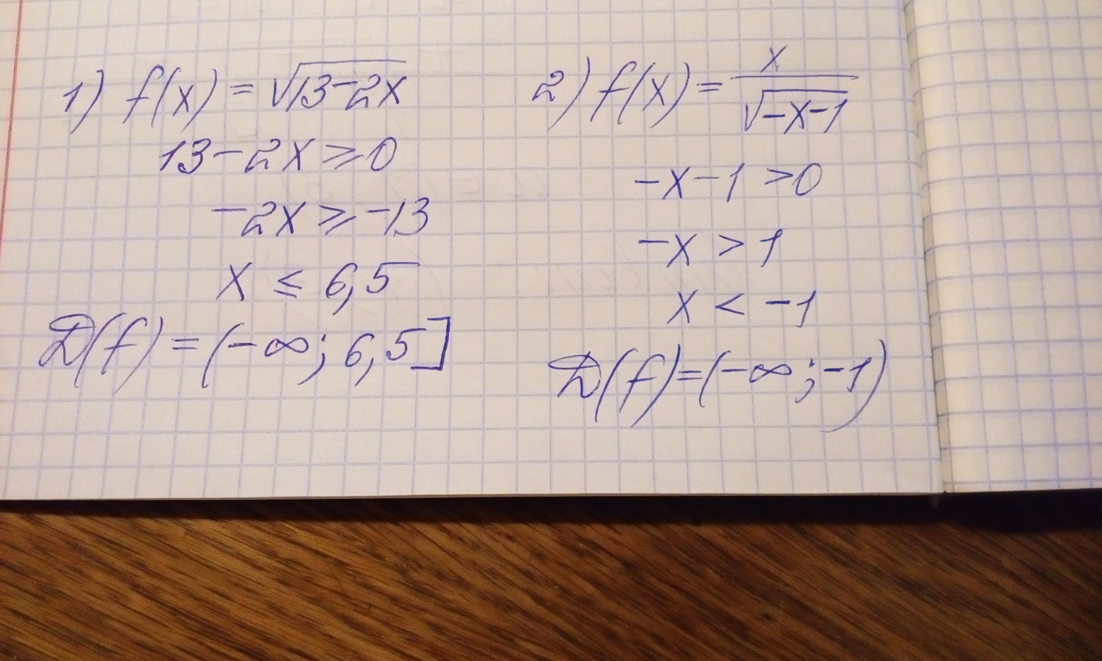 1)f(x)=√13-2х, 2)f(x)=х/√(-х-1)
