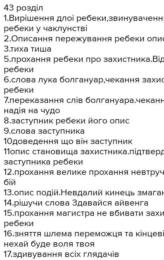 складіть будьласк план до Айвенга Розділ XLIII 7-8 пунктів )даю 25 балів
