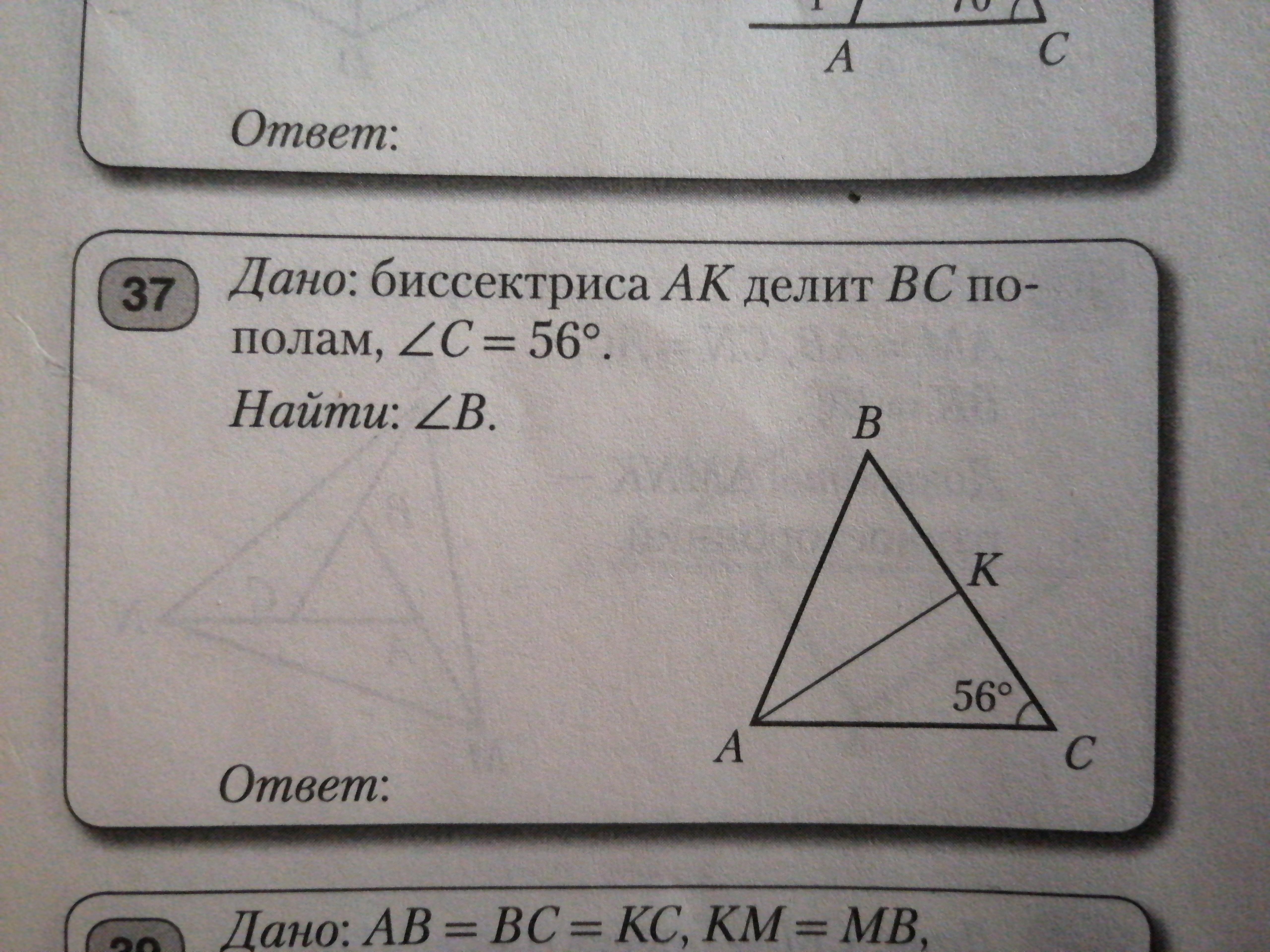 угол В = 56°