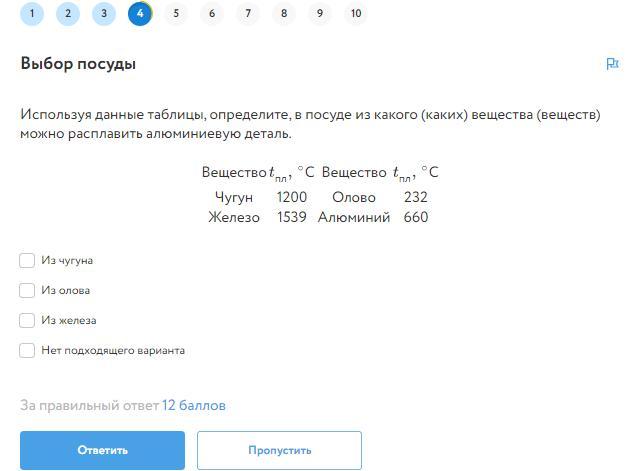 Используя данные таблицы, определите, в посуде из какого (каких) вещества (веществ) можно расплавить алюминиевую деталь.