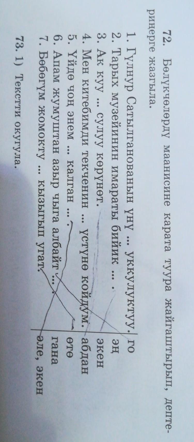 72. Бөлүкчөлөрдү маанисине карата туура жайгаштырып, дептериңерге жазгыла.