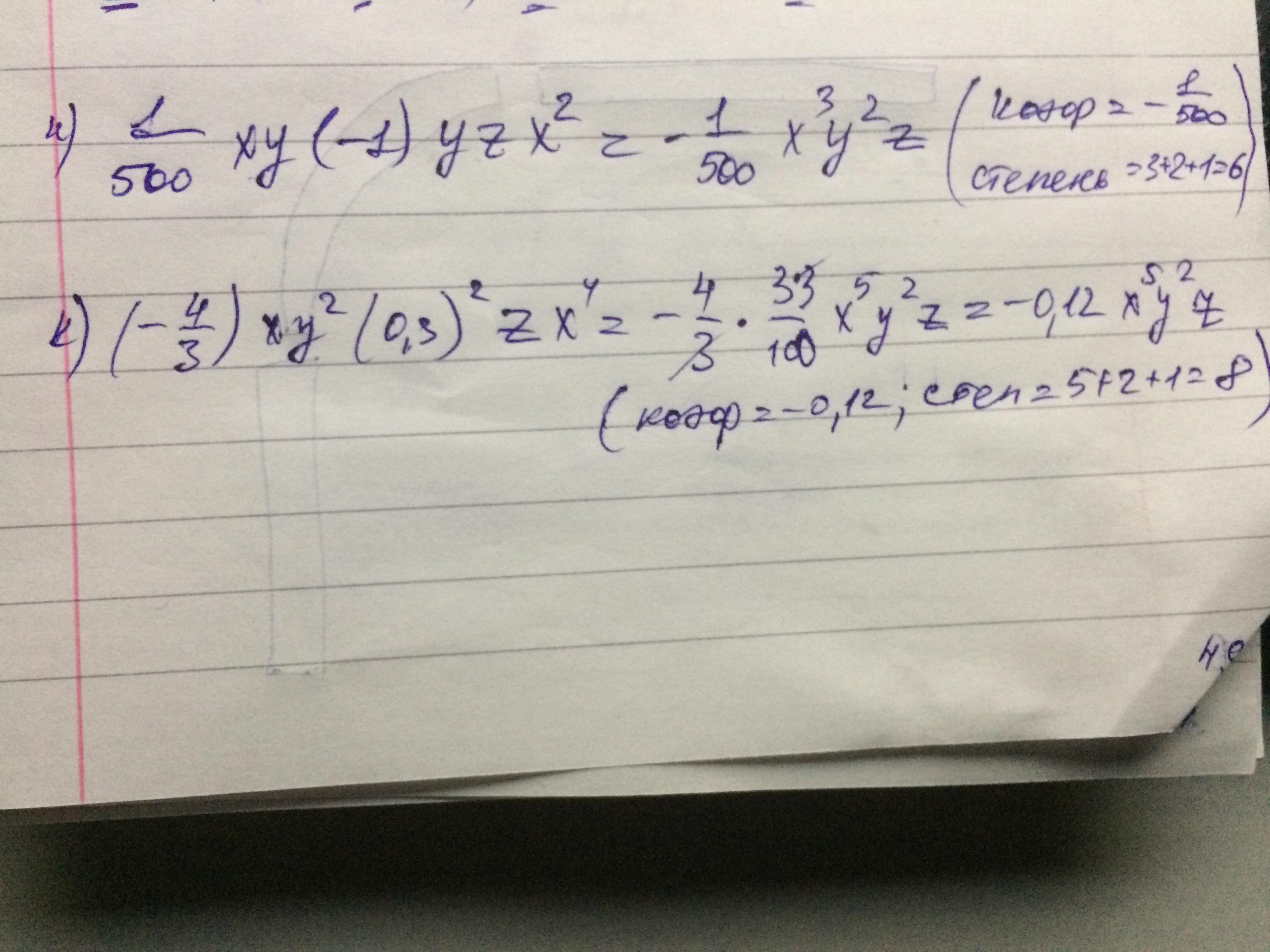 приведите одночлены к стандартному виду, найдите его коэффициент и степень