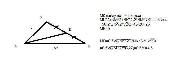 Решите задачу векторным методом выполните рисунок дан треугольник MNK известно что MN-2 см NK-5√2