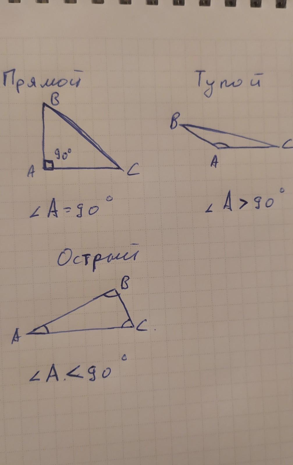 Нарисовать 3 триугольника острый тупой я прямой обозначить углы и подписать