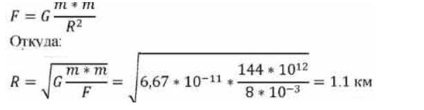 Чему равно расстояние между двумя астероидами массой 12000т каждый,когда они притягиваются к друг другу с силами,8мН ?