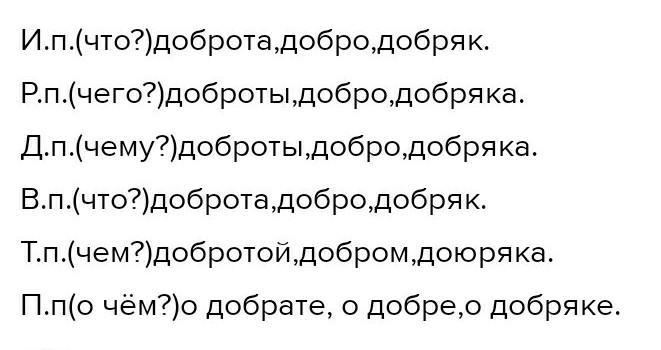 Просклоняйте имена существительные по образцу слова доброта добро добряк
