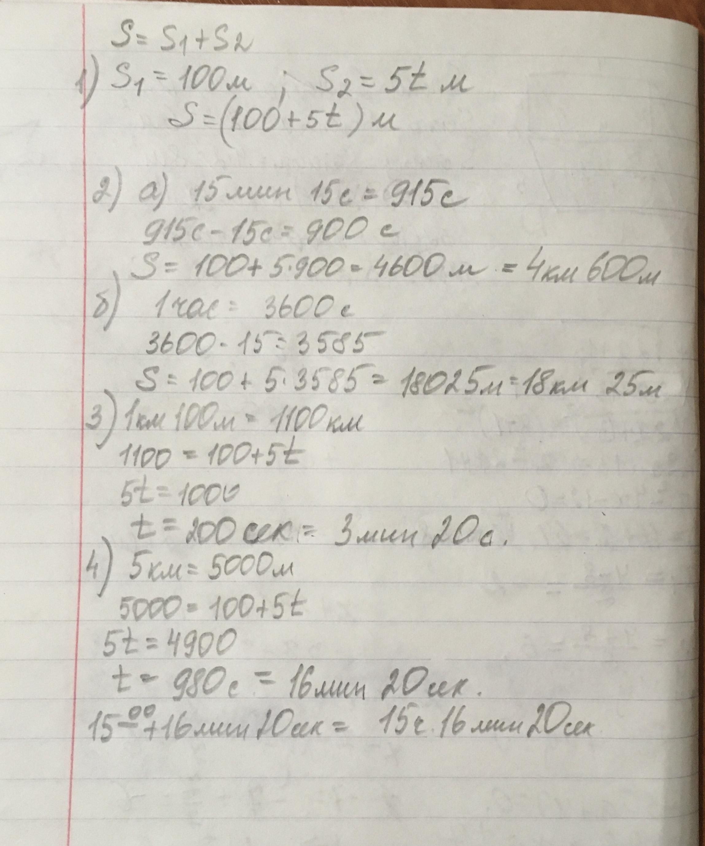 3) За какое время велосипедист пройдёт путь 1 км 100м?