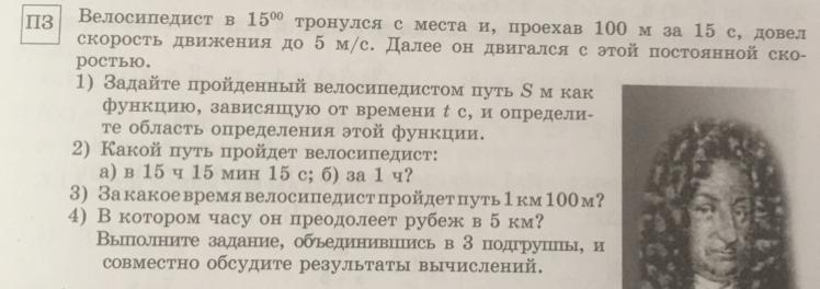 1) Задайте пройденный велосипедистом путь S м, как функцию, зависящую от времени t с, и определите область определения этой функции.