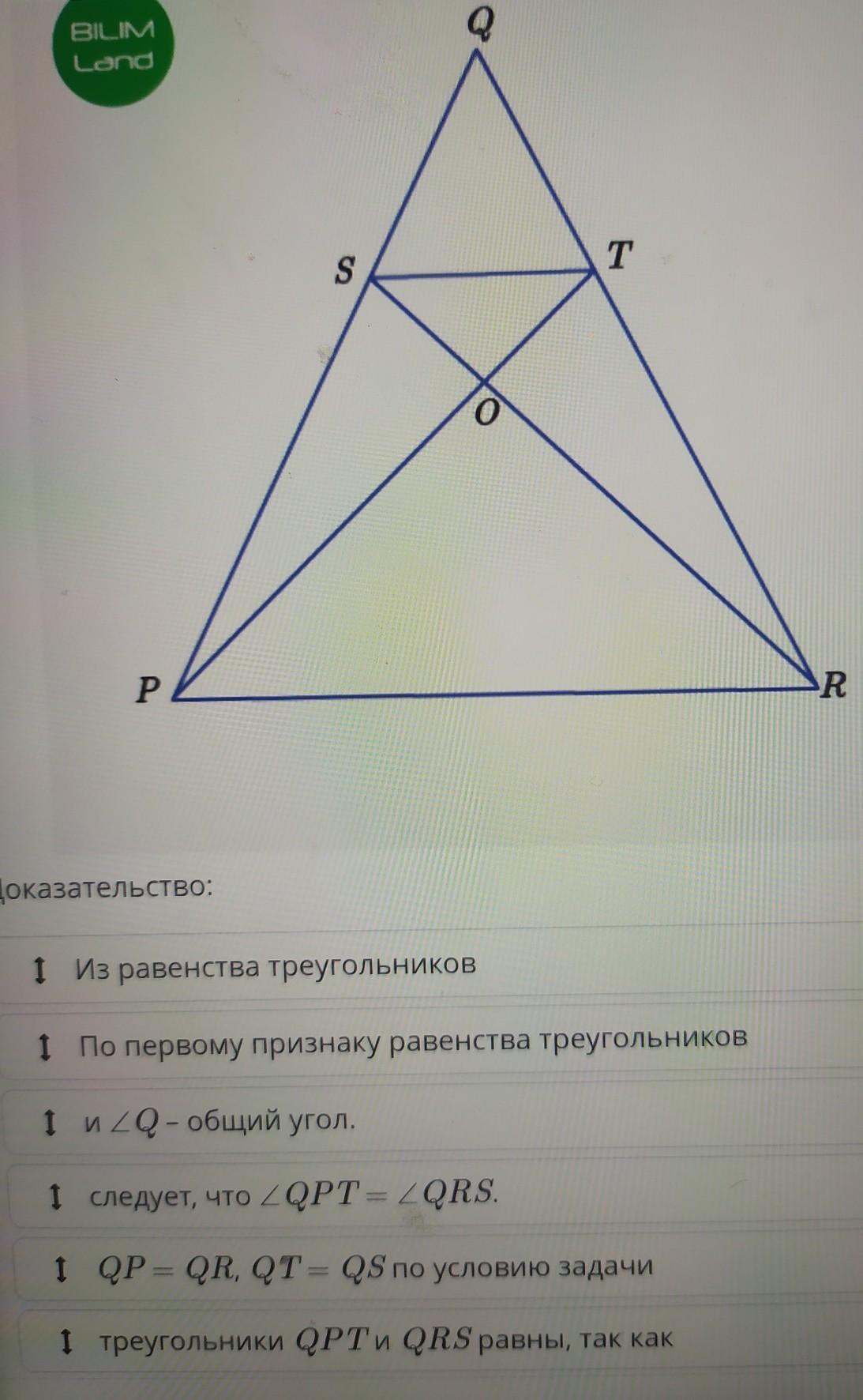 1 треугольники QPT и QRS равны, так как