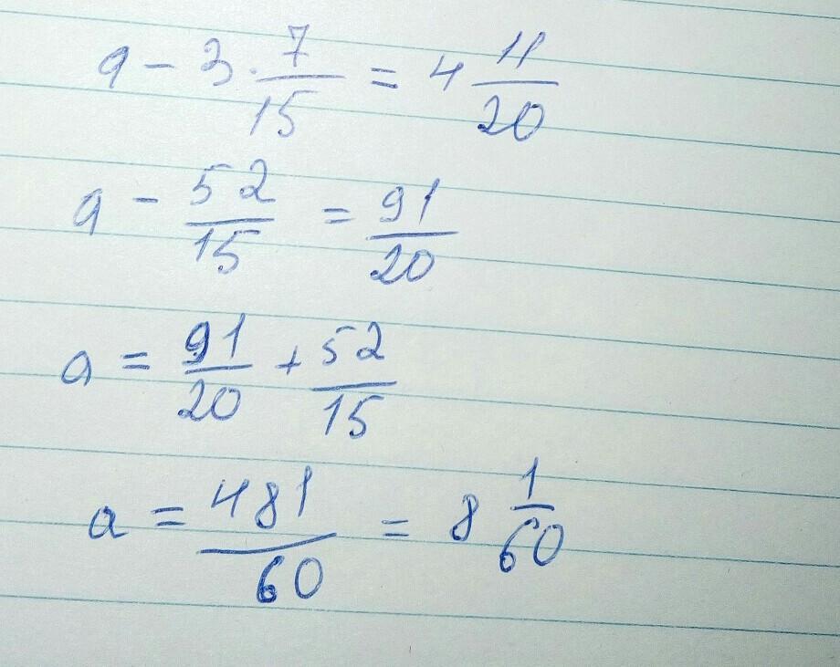 помогите решить уравнение а-3 7\15=4 11\20 нужно с полным решением и ответом