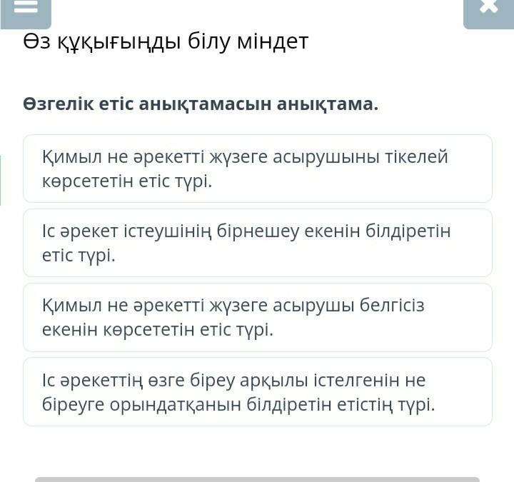 Іс әрекеттің өзге біреу арқылы істелгенін не біреуге орындалғанын білдіретін жетістік түрі