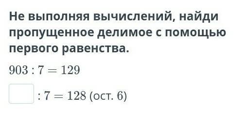 Пошаговое объяснение: если 903:7=129, то 902:7 будет 128 (ост.6)