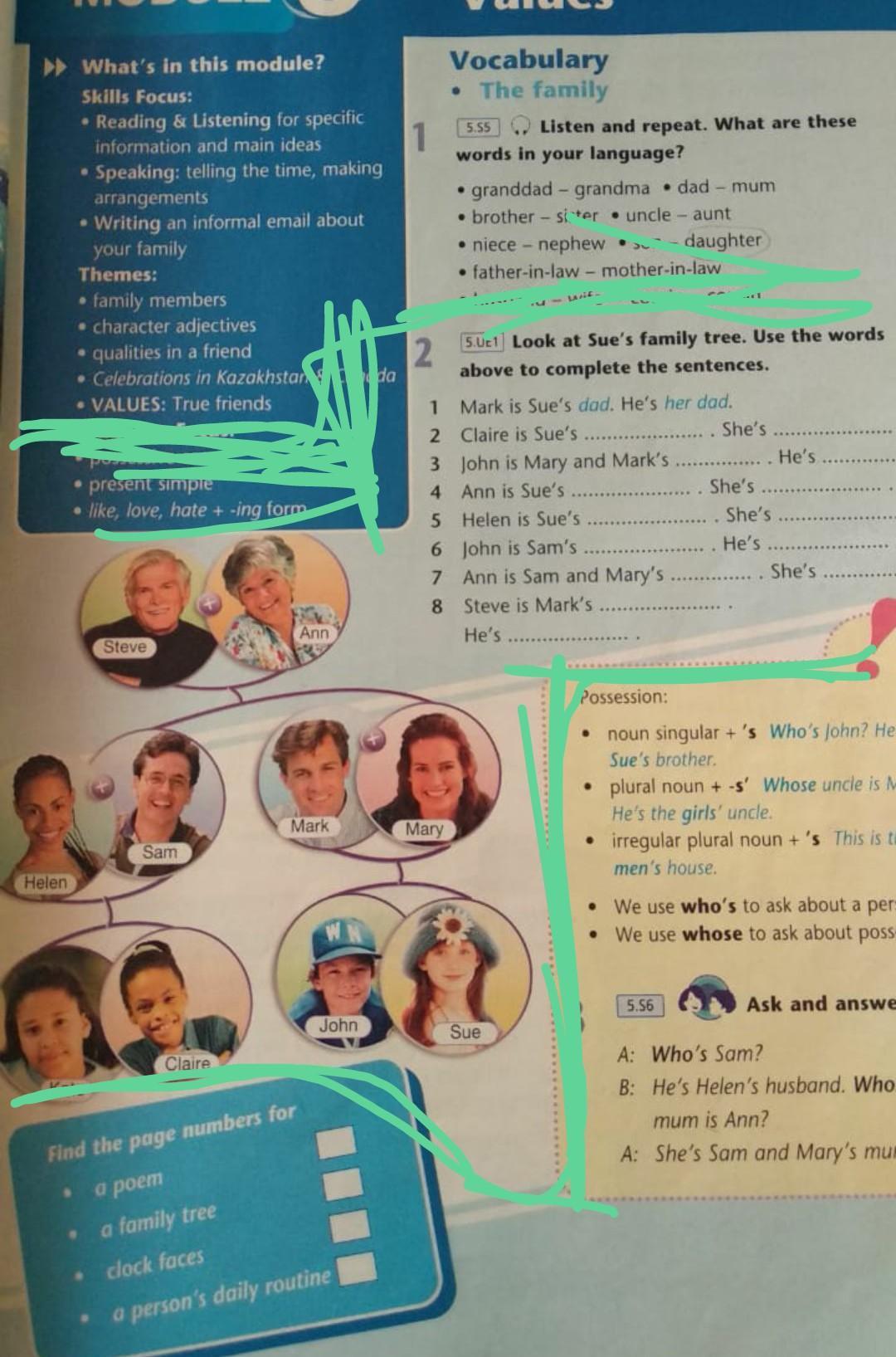 я вас умоляю .: Во 2 задании использовать possessive adjectives : her- её, his- его, their- их.
