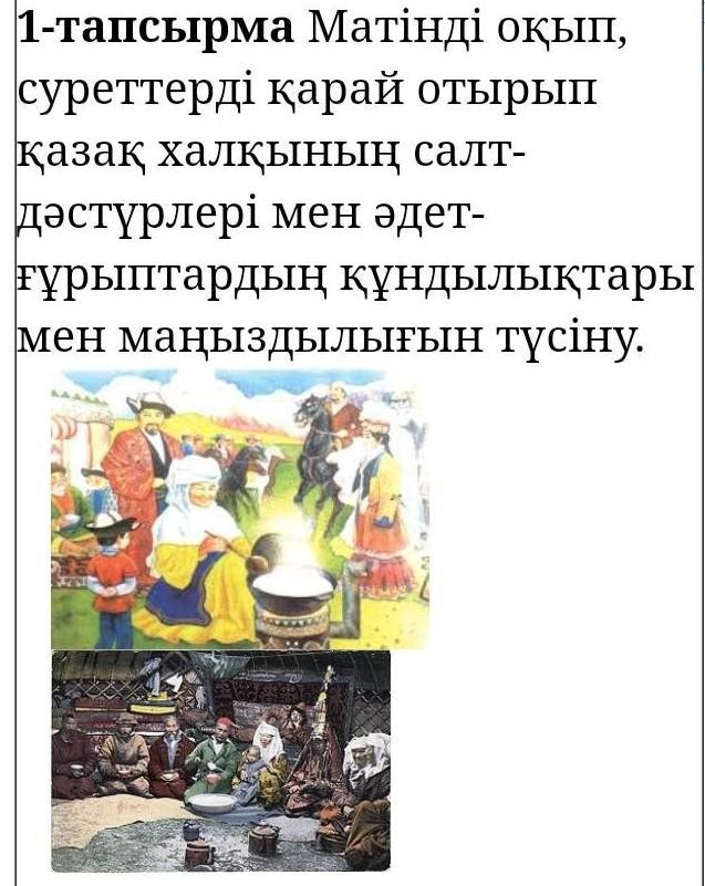Қазақ халқы салт-дəстүрлер мен əдет-ғұрыптарды ерте кезден ақ сақтаған. Олардың маңыздылығы ерте кезден ақ белгілі.