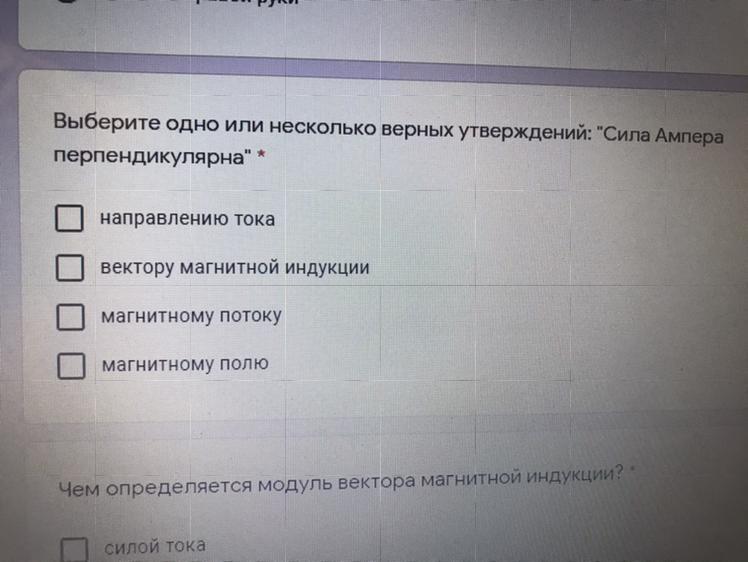 Сила Ампера перпендикулярна направлению тока и вектору магнитной индукции.