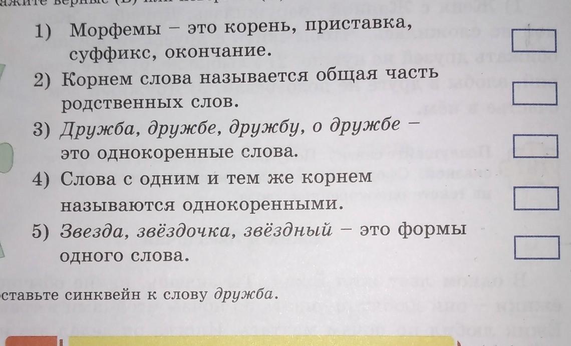 3) Дружба, дружбе, дружбу, о дружбе - это однокоренные слова - Верно.