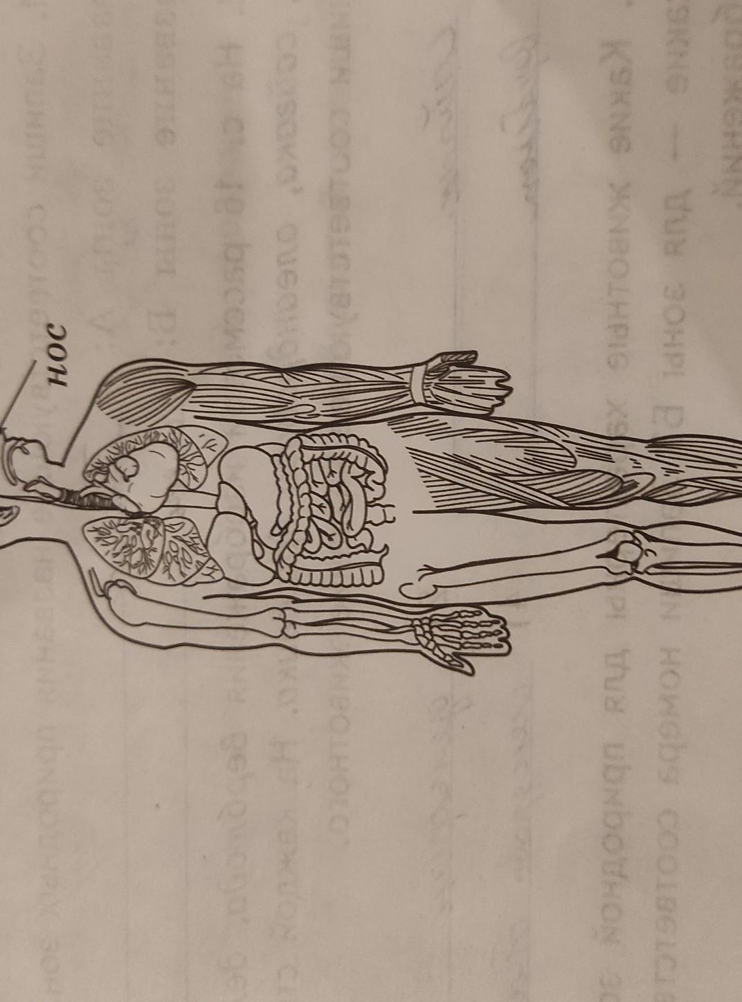 внимательно рассмотри изображение человека на рисунке стрелкой отмечено нос покажи стрелками и подпиши шею стопу и кишечник.