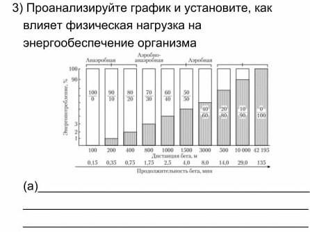 проанализируйте график и установите как влияет физическая нагрузка на энергообеспечение организма. 13 балов