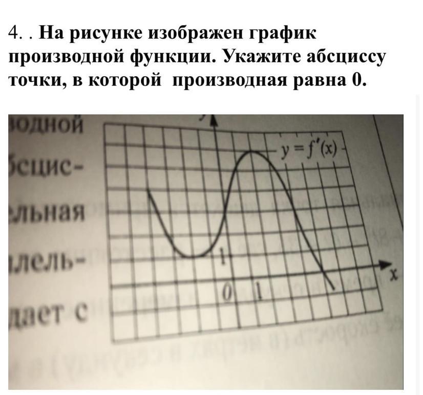 На рисунки изображён график производной функции. Укажите абсциссу точки, в которой производная равна 0