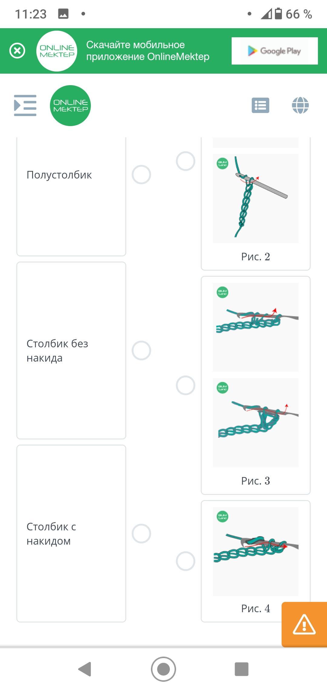 Сопоставь названия приемов вязания с иллюстрациями.Помогите пожалуйста как можно быстрее (◍•ᴗ•◍)