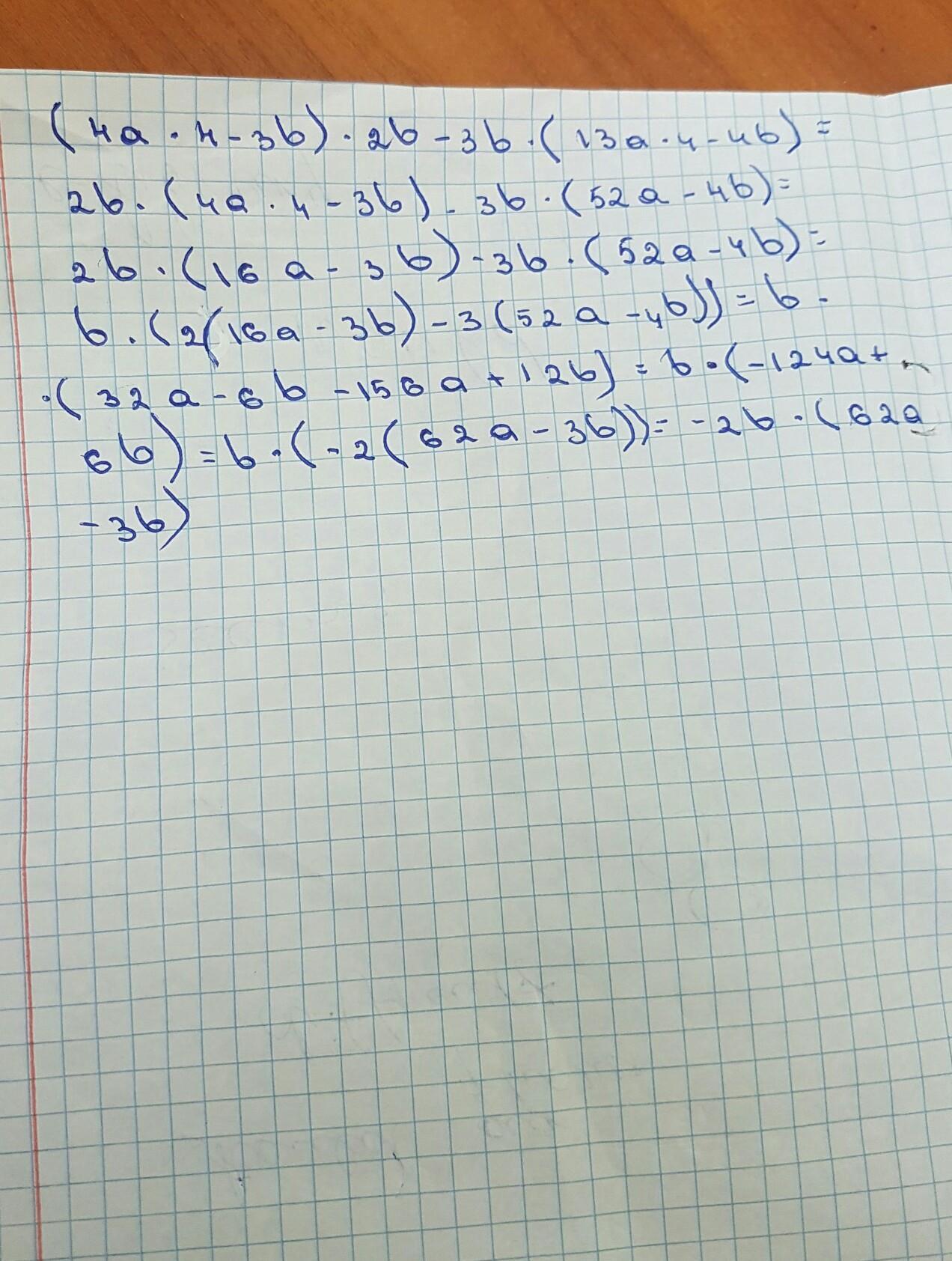Упрости выражение (4a4−3b)⋅2b−3b⋅(13a4−4b).
