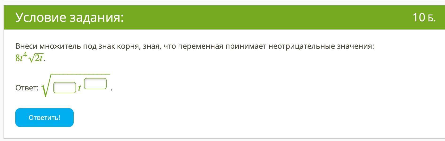 Внеси множитель под знак корня, зная, что переменная принимает неотрицательные значения: