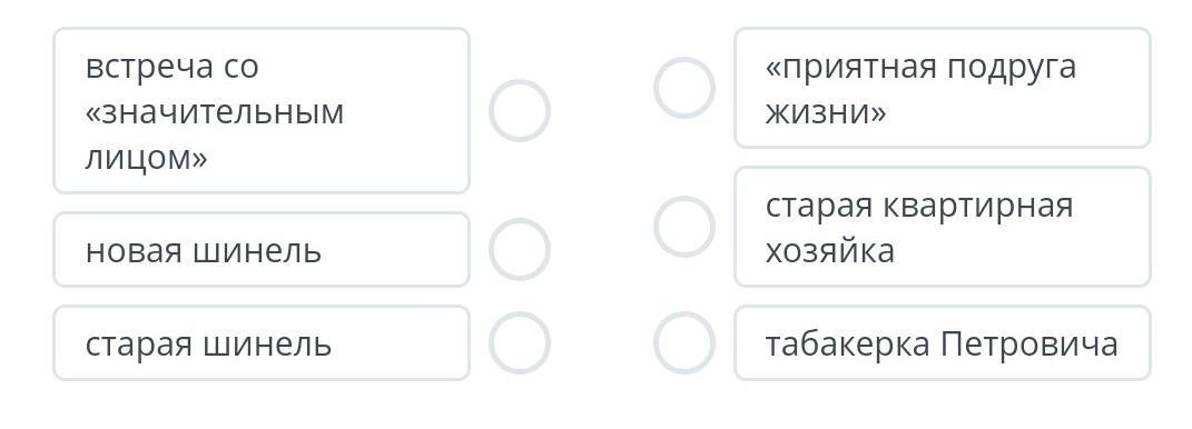 Соедини пары, соответствующие друг другу в символике глубинного смыслового подтекста повести «Шинель».