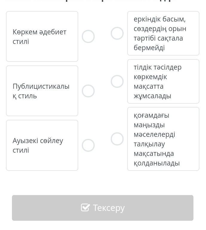 Жазу стильдері мен олардың сипаттамаларын өзара сәйкестендір.