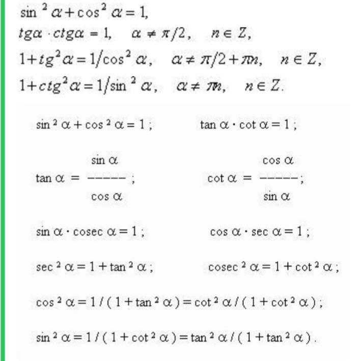 Какие тригонометрические тождества вы знаете