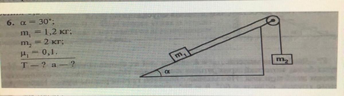 Угол альфа=30 градусов; m1=1,2 кг; m2=2кг; мю1 (коэффициент трения)=0,1
