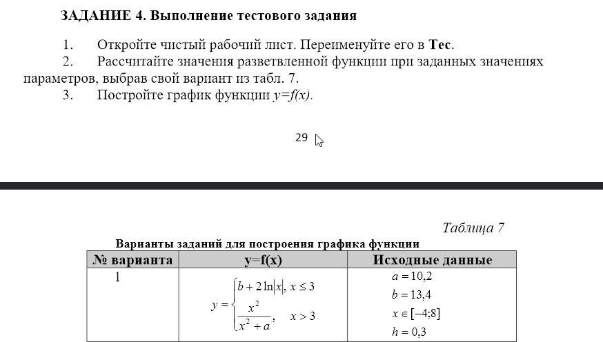 Помогите,пожалуйста,решить функцию и начертить график в Excel. Совсем не понимаю :(