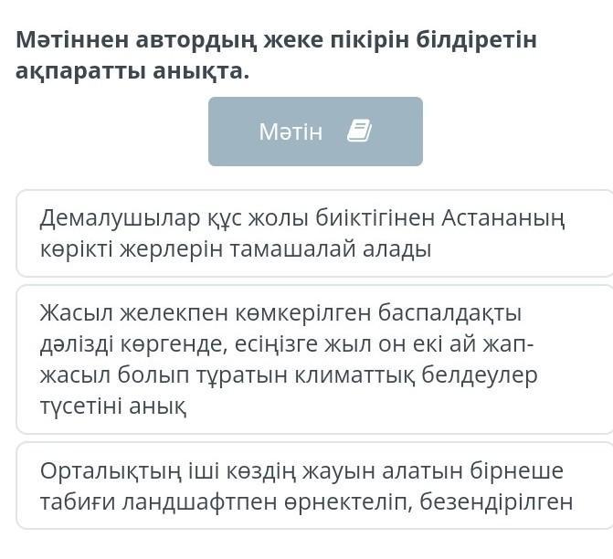 Мәтіннен автордың жеке пікірін білдіретін ақпаратты анықта.