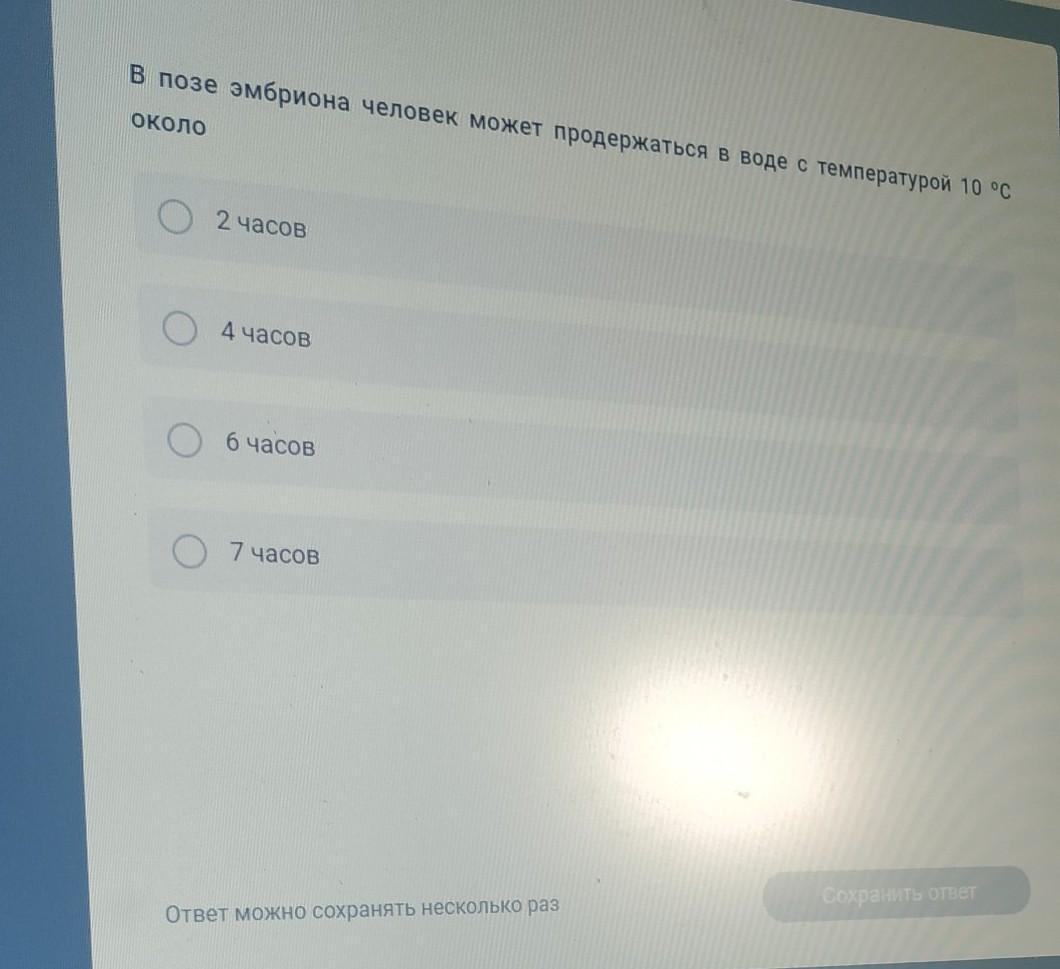 В позе эмбриона человек может продержаться в воде с температурой 10 ºC около 4 часов