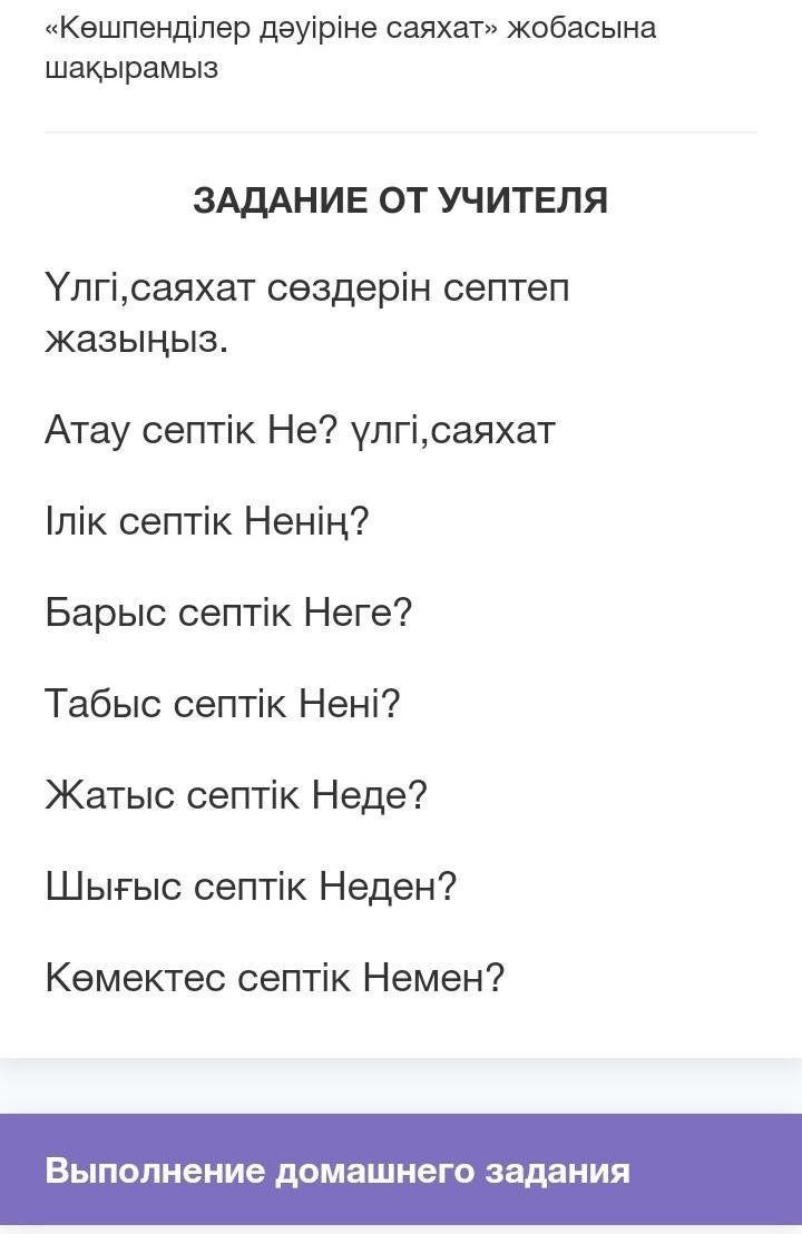 Үлгі,саяхат сөздерін септеп жазыңыз. ПОМОГИТЕ ПЖПЖПЖПЖПЖП