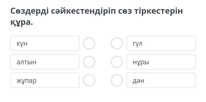 Сөздерді сәйкестендіріп сөз тіркестерін құра.