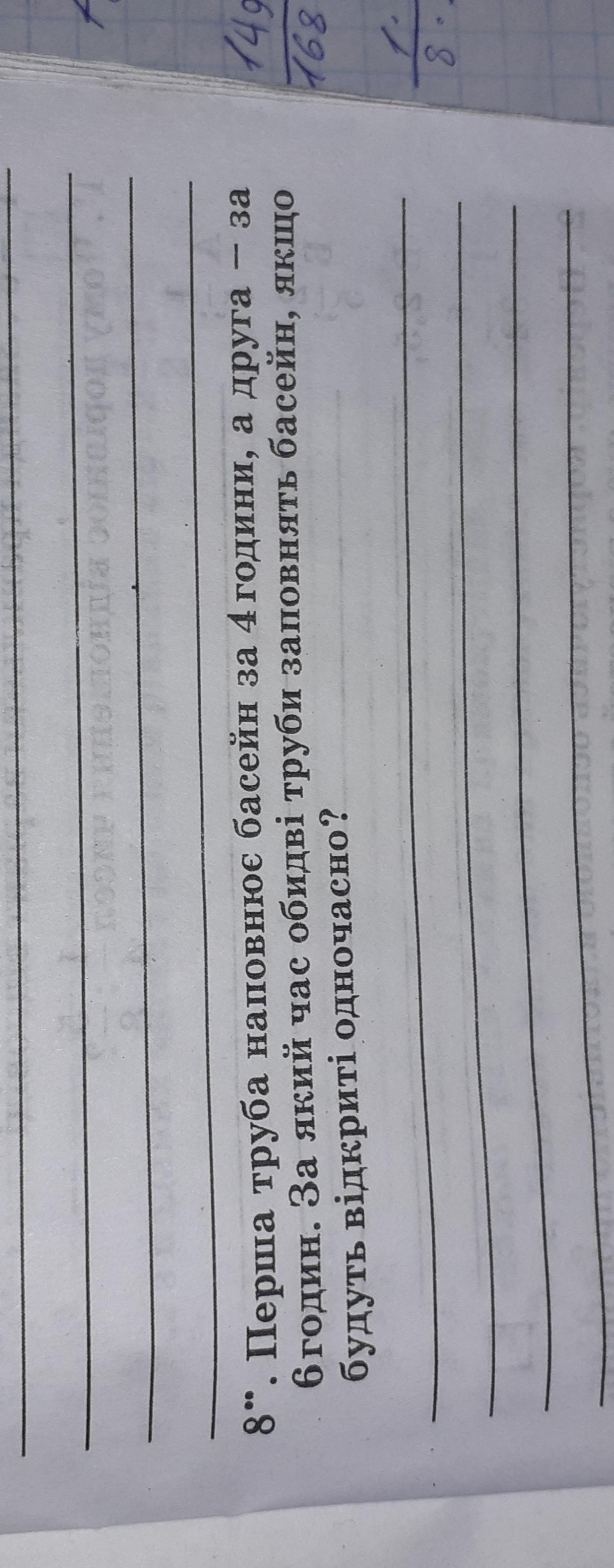 1 : 5/12 = 12/5 = 2,4часа за столько наполнится бассейн через две трубы