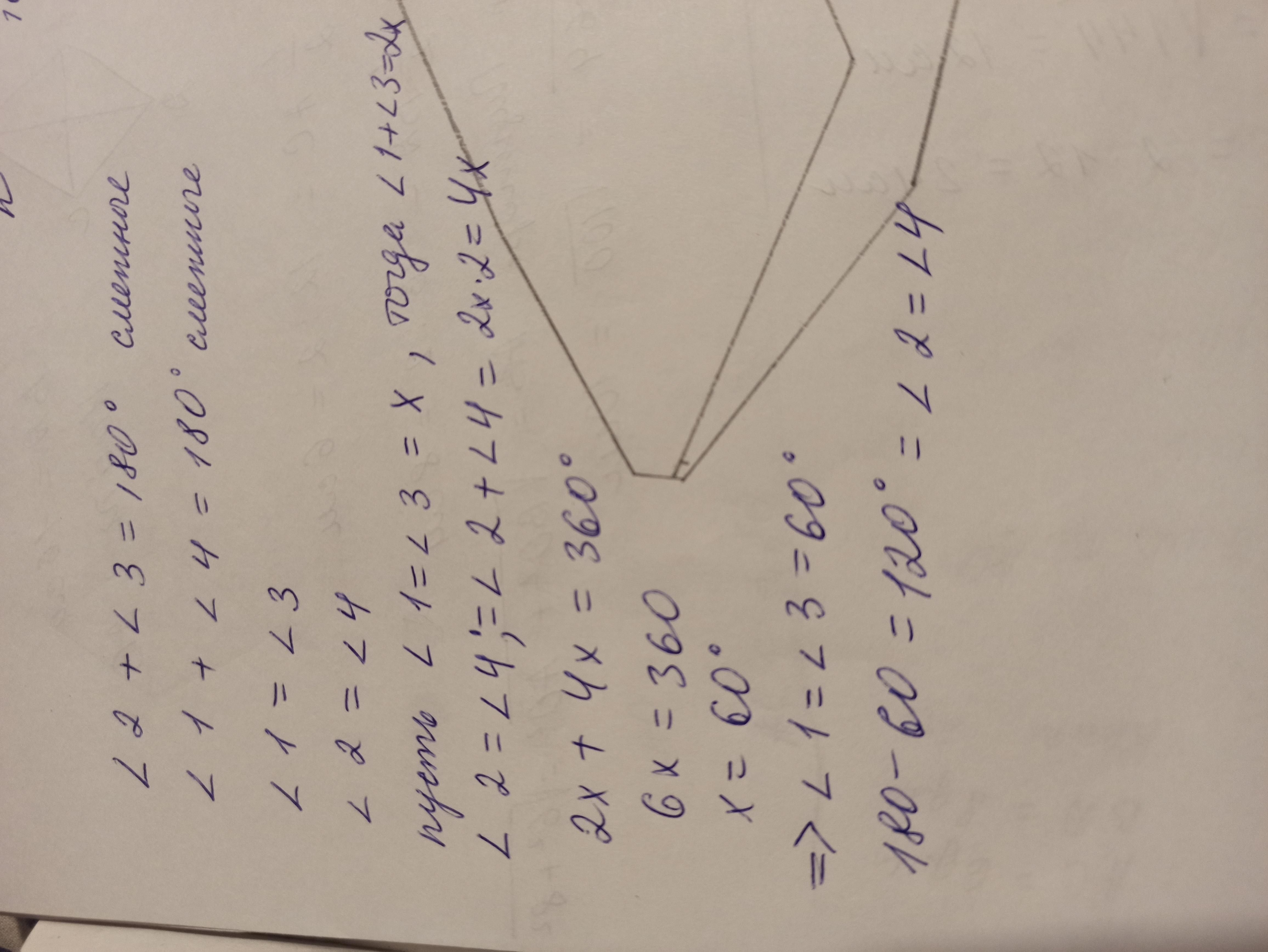 Ответ:углы 1 и 3 по 60°, углы 2 и 4 по 120°