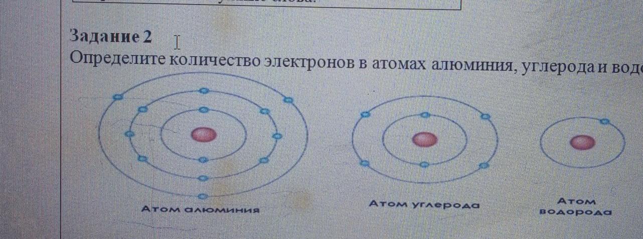 Определите количество электронов в атомах алюминия, углеродаи водорода.