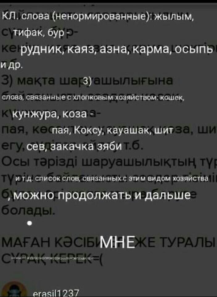 3) мақта шаруашылығына байланысты сөздер: көсек, күнжара, қоза-