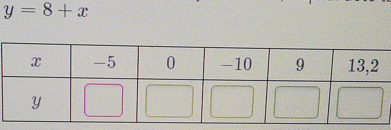 Вот какие мне числа вписывать в эти окошки, используя формулу y=8+x