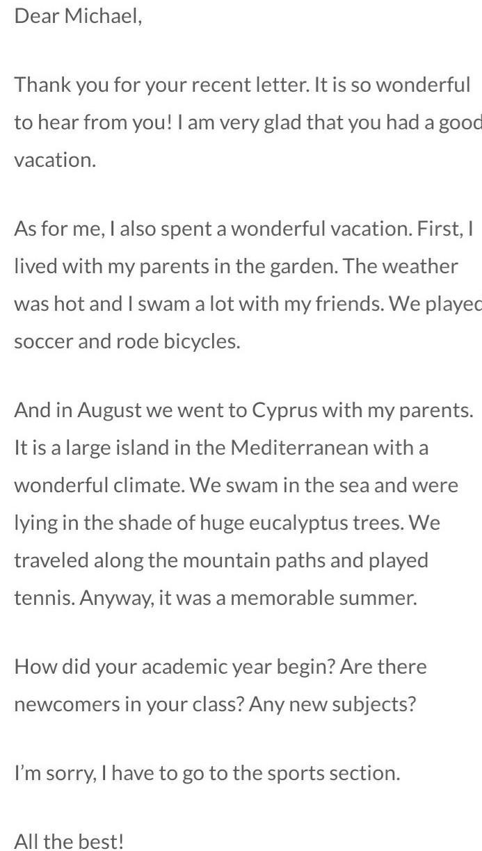 Напишите ответ на письмо вашего друга по переписке. Ответьте на его вопросы. Количество слов в вашем письме ДОЛЖНО быть хотя бы 90.